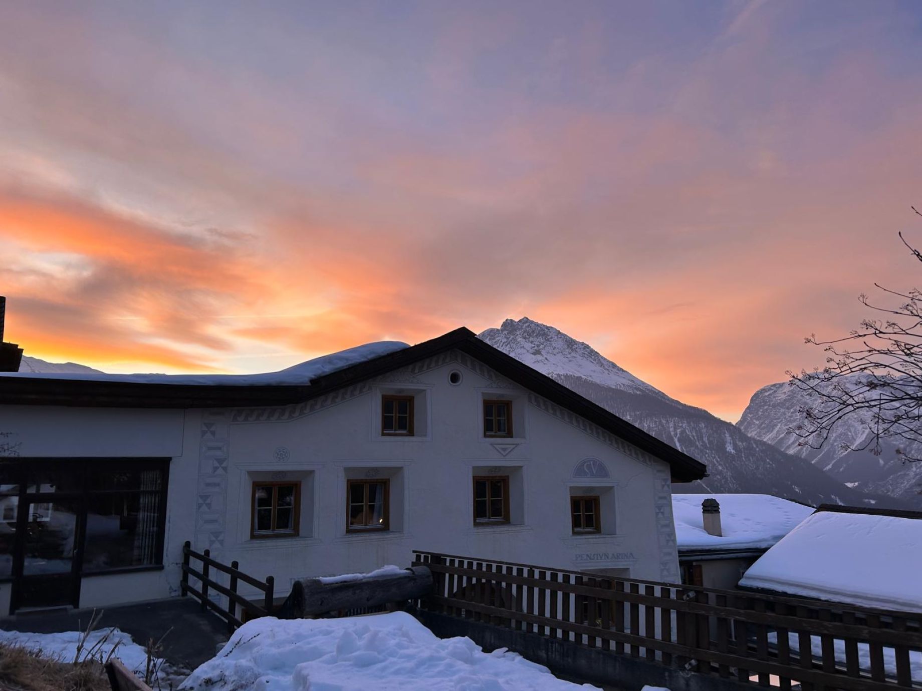 Vor ca. 500 Jahren als typisches Engadiner Bauernhaus gebaut, diente das Gebäude der landwirtschaftlichen Tätigkeit bis Mitte des letzten Jahrhunderts. Als Zusatzverdienst wurden um ca. 1900 bereits die ersten Gäste beherbergt. Der Ausbau der Scheune und zusätzliche Gästezimmer wurden Mitte 1960 realisiert. Die Pensiun Arina verdankt ihren Namen dem Piz Arina, einem herrlichen Wander- und Aussichtsberg.