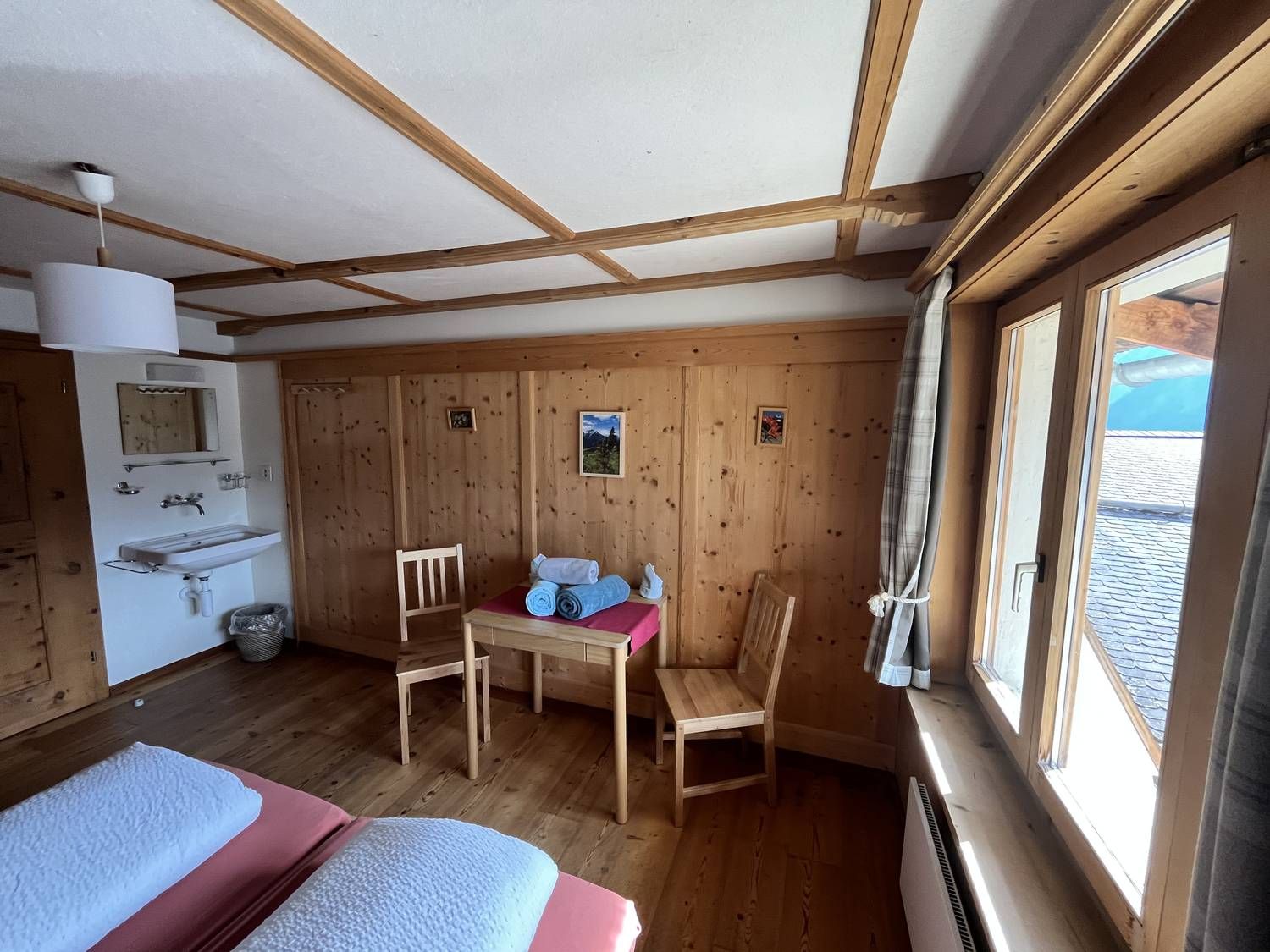 Alle Zimmer verfügen über ein Waschbecken und sind individuell eingerichtet. Dusche und WC befinden sich auf der Etage.
